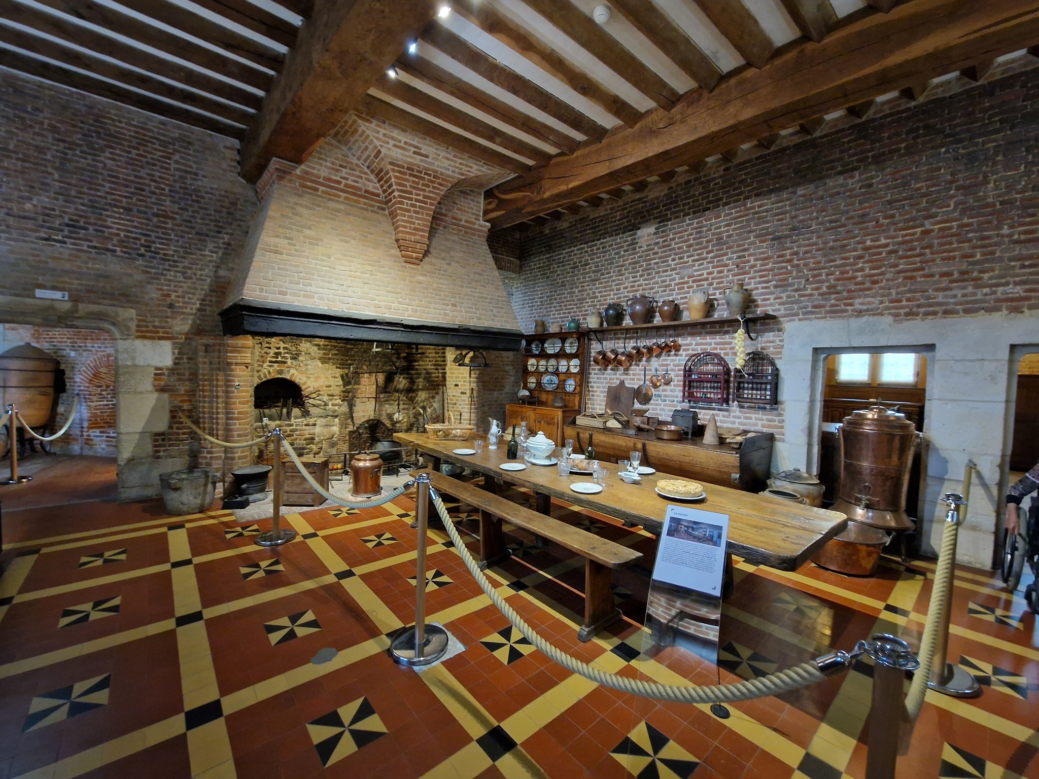 Aangekomen bij het Chateau de Martainville was de zon krachtig en warm. Grote open haarden in het gebouw uit de 15e eeuw toont taferelen uit het dagelijkse leven in de 18e en 19e eeuw.